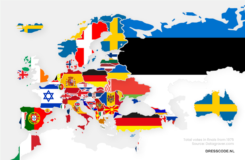 Sinds 1975 gaf België tijdens alle finales opgeteld de meeste punten weg aan Nederland. Zelf zijn we overigens minder trouw aan onze zuiderburen: Nederland deelde de afgelopen jaren namelijk de meeste punten uit aan Zweedse acts.
